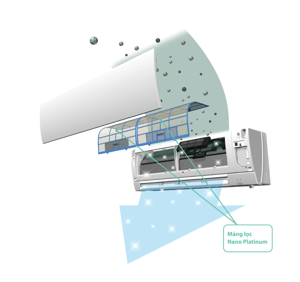 Mitsubishi Electric tích hợp màng lọc Nano Platinum kháng khuẩn, khử mùi, cùng khả năng thu gom bụi vượt trội. Ngoài ra, máy còn hỗ trợ màng lọc Enzyme chống dị ứng và bộ lọc vi bụi (tùy chọn), giúp loại bỏ bụi mịn, phấn hoa và các tác nhân gây dị ứng.
