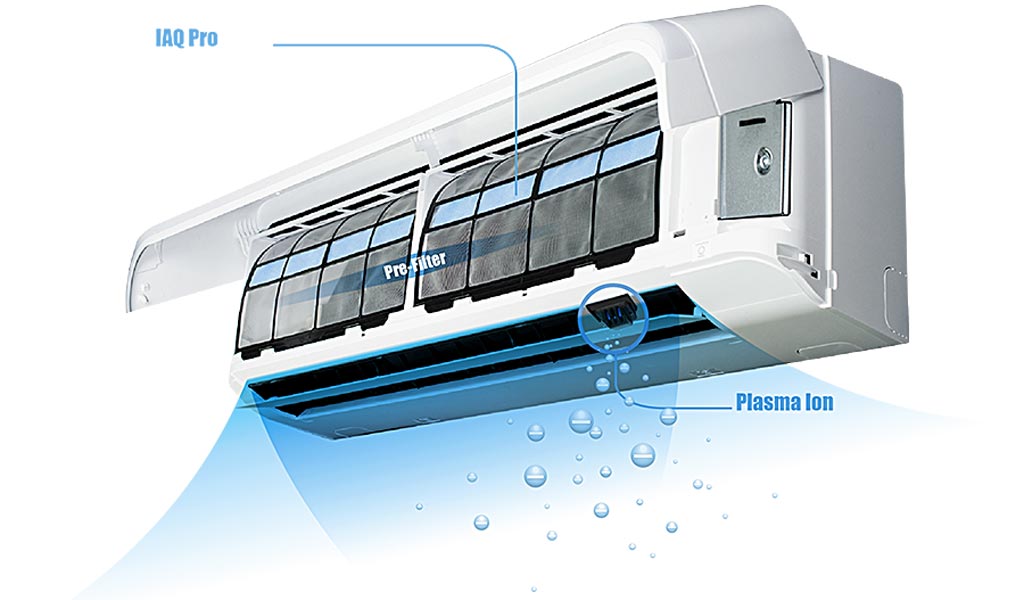 - Plasma Ion & hệ thống IAQ Pro: Loại bỏ vi khuẩn, virus (kể cả H5N1), nấm mốc và mùi khó chịu, bảo vệ sức khỏe tối đa.
